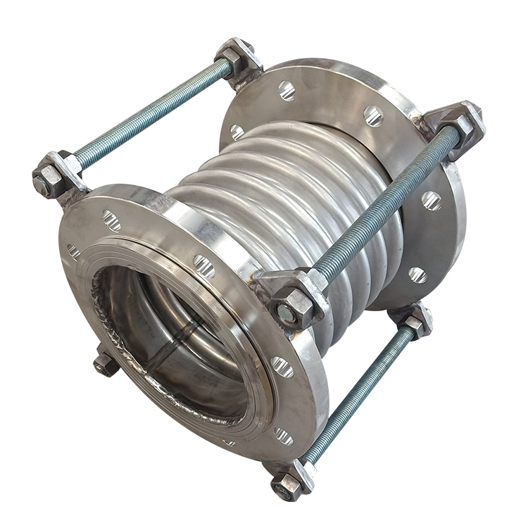 轴向内压式波纹补偿器由一个波纹管和两个端接管构成,端接管或直接与管道焊接,或焊上法兰再与管道法兰连接。补偿器上的拉杆主要是运输过程中的刚性支承或作为产品预变形调整用,它不是承力件。该类补偿器结构简单,价格低,因而优先选用。