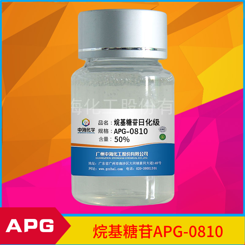 • APG0810(A)在高浓度强酸、强碱和电解质溶液中具有良好的溶解性、渗透性和相容性,对各种材质无腐蚀作用,洗后无痕且不会应力开裂,适合用于家居清洗、工业硬表面清洗、纺织工业用耐高温强碱的精炼剂、石油开采用发泡剂等;