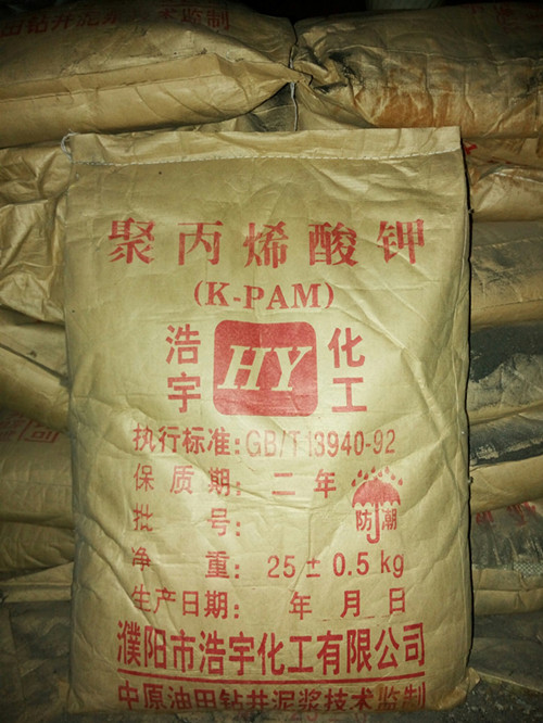 聚丙烯酰胺钾盐与各种聚丙烯酰胺类泥浆处理剂配伍性能良好。它在不同比重的聚合物不分散泥浆体系中以及分散型泥浆体系中都可以使用,它在淡水泥浆中性能优良,在饱和盐水泥浆中也可充分显示效果。可以直接加入各种水基钻井液体系中,根据需要确定在泥浆中投加量,一般为0.2%-0.6%(体积/质量)。在加入泥浆前,首先要把粉末聚丙烯酸钾配成较稀的水溶液。配制聚丙烯酸钾水溶液时,在充分搅拌的水中缓慢加入干粉(必要时先使用乙醇等水溶性低碳醇润湿干粉,以利于在水中的充分分散)继续搅拌直至完全溶解。