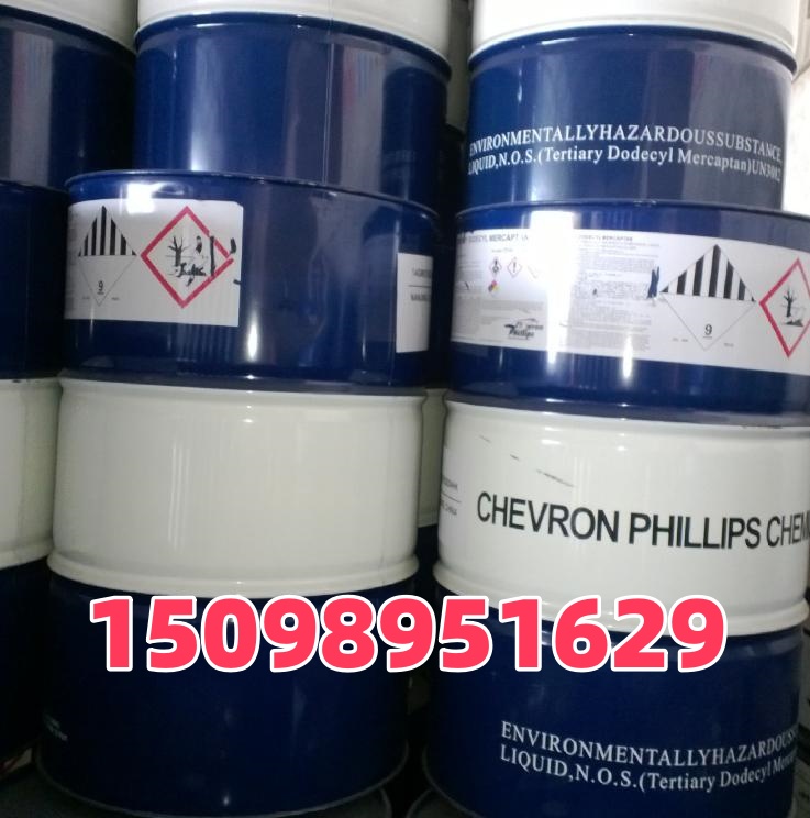 叔十二烷基硫醇,175kg/桶,现货供应15098951629叔十二烷基硫醇有两个主要的应用领域,一是作为自由基聚合时的链交换剂,另一个是作为润滑油的添加剂。应用行业比较广,主要用作高分子聚合时的分子量调节剂,如:丁苯橡胶、丁腈橡胶等橡胶乳液;耐高冲击聚苯乙烯等苯乙烯系列数值聚合时的调节剂;特殊工程塑料ABS的调节剂。除了这些主要用途外,叔十二烷基硫醇还可用作非离子表面活性剂,有机合成、防锈剂,润滑油添加剂,农药,杀虫剂等的原料。