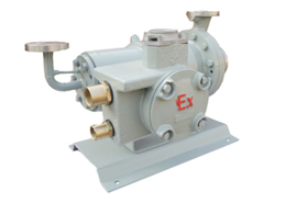 隔爆型屏蔽电泵可用于输送易燃易爆介质,或用于爆炸性危险场所,要求泵体采用防爆材料,如铝合金,不锈钢等材质。具有结构简单,性能平稳,转速高,体积小,重量轻,效率高,流量大,容易操作和维修等优特点。 隔爆型屏蔽电泵是用同一根轴将电机的转子和柱塞计量泵的叶轮固定在一起,然后用屏蔽套将这一组转子屏蔽住。而电机的定子围绕在屏蔽套的四周,屏蔽套是由金属制成的,因此动力可以通过磁力场传递给转子。而整个转子都在被泵送液体中运转。屏蔽的端部靠法兰或焊接的结构实现静密封。屏蔽套实际上是一个压力容器。定子的内表面和转子的外表面装有耐腐蚀金属薄板制造的定子屏蔽套和转子屏蔽套。各自端面用耐腐蚀金属薄板与它们焊接,与被输送液体分隔,使定子绕组铁芯和转子铁芯不受浸蚀。除了屏蔽套之外,还有一个部件是循环管,利用泵送液体对轴承润滑与冷却,有时也对电机冷却。屏蔽泵的轴向力平衡方式,通常采用自动推力平衡装置,有时也选用叶轮背面装有径向叶片,即背叶轮推力平衡机构。