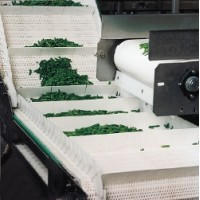 输送带:模块网输送带;龙骨链输送带;传送带;塑料链板;蓄电池链板输送带;轮胎胶片冷却输送带;杀菌线塑料链板带;冷却链塑料网带链转弯平顶链;塑钢组合带;输送链板;带档板网带;输送网带;食品输送带;防油输送带;模块网输送带;耐腐蚀链板;耐酸碱输送带;塑料网带链;耐高温塑料网带链;塑钢组合链;蓄电池行业输送带;汽车行业专用输送带;PVC输送带;水产行业输送带;轨道;垫条;塑料链板输送机:网带节距:25.4mm,厚度:8.8mm,材质:pom/pp,适应温度范围:4/80℃、5/105℃,**工作载荷:35000/20000N/M,背弯半径:40mm;网带采用一体式机加工齿轮传动,齿轮可选齿数分别为:10/12/15/18/19,齿顶圆直径分别为:80.3/96.5/121.5/145.9154.2mm,可选孔径:圆孔20/25mm,方孔40*40、50*50、60*60mm,也可按照要求加工;