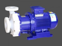 氟塑料磁力泵利用磁力偶合器传递动力,全密封无泄漏,当电动机带动磁力偶合器的外磁钢旋转时,磁力线穿过间隙和隔离套,作用于内磁钢上,使泵转子与电动机同步旋转,无机械接触地传递扭矩。由于液体被封闭在隔离套内,从而解决了物料的泄漏,减少了污染,节约了能源,净化了环境,保护了生产线上工作人员的身心健康。