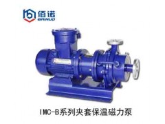 IMC-B夹套保温磁力泵是上海佰诺泵阀公司在普通磁力泵的基础上,吸取高温保温泵的优点,重新设计制造的一种新型磁力泵,它广泛应用于石油、化工、制药、电镀、环保等行业,可输送温度100℃以内的易燃、易爆、剧毒、贵重等液体。夹套保温磁力泵磁村采用强磁耐高温材料,确保足够的磁传力矩;隔离套设计成不等截面结构,较等截面筒型隔离套的涡流损失减少1/2;采用独特设计的新型保温箱结构,保证了介质在输送过程中不会冷凝,同时温度过高时,保温箱中的可通入冷却水,带走过多的热量,可以有效的保证电机和磁钢的正常运转;采用流体动力润滑轴承,比原有磁力泵的同心圆式轴承运转更可靠,寿命更长;采用新型的保温结构,确保介质在运转过程中不会结晶;可以根据用户要求配备断流自动停车装置,以避免泵的干运转。